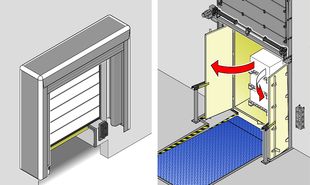 Für Be- und Entladevorgänge an temperierten Hallen empfiehlt sich die Torführung vor, kombiniert mit einem festen Isolations-Paneel unterhalb der Ladebrücke. Eine HTL2 ISO, wie sie von Hörmann angeboten wird, lohnt sich vor allem bei täglichen Verlade- und Öffnungszeiten von acht bis neun Stunden.