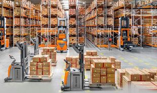 Für kurze Wege sind die verschiedenen Artikel in Kartons verpackt und nach der ABC-Analyse übersichtlich und sortenrein auf Paletten im Schmalganglager eingelagert. Alle Automated Guided Vehicles (AGV) navigieren sicher und selbstständig dank rotierender Laserscanner, die fortwährend den Abstand zu den installierten Reflektoren messen. Drei MX-X Schmalgangstapler und sechs EXV-SF Hoch-Hubwagen der neuesten Generation wurden jeweils mit dem iGo Systems Automatisierungskit von Still ausgestattet.