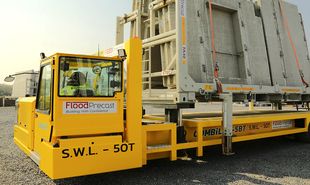 Der neue Wechselbrücken-Transporter Combi-SBT kann eine Vielzahl von Wechseleinheiten bis maximal 50 t transportieren, von Standard-Container-Wechselbrücken bis hin zu Betonwandplatten, von der Produktion bis zur Lagerung.