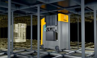 Jungheinrich feiert auf der LogiMAT Premiere seines Kompaktlagers PowerCube. Darin bewegen sich die Shuttles mit bis zu 4 m/s und können jeweils zwei Behälter gleichzeitig mit je 50 kg Ladung innerhalb des Power-Würfels transportieren.