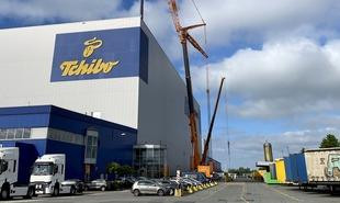 Krans über Dachöffnungen in ein Hochregallager des Bremer Logistikzentrums von Tchibo im Neustädter